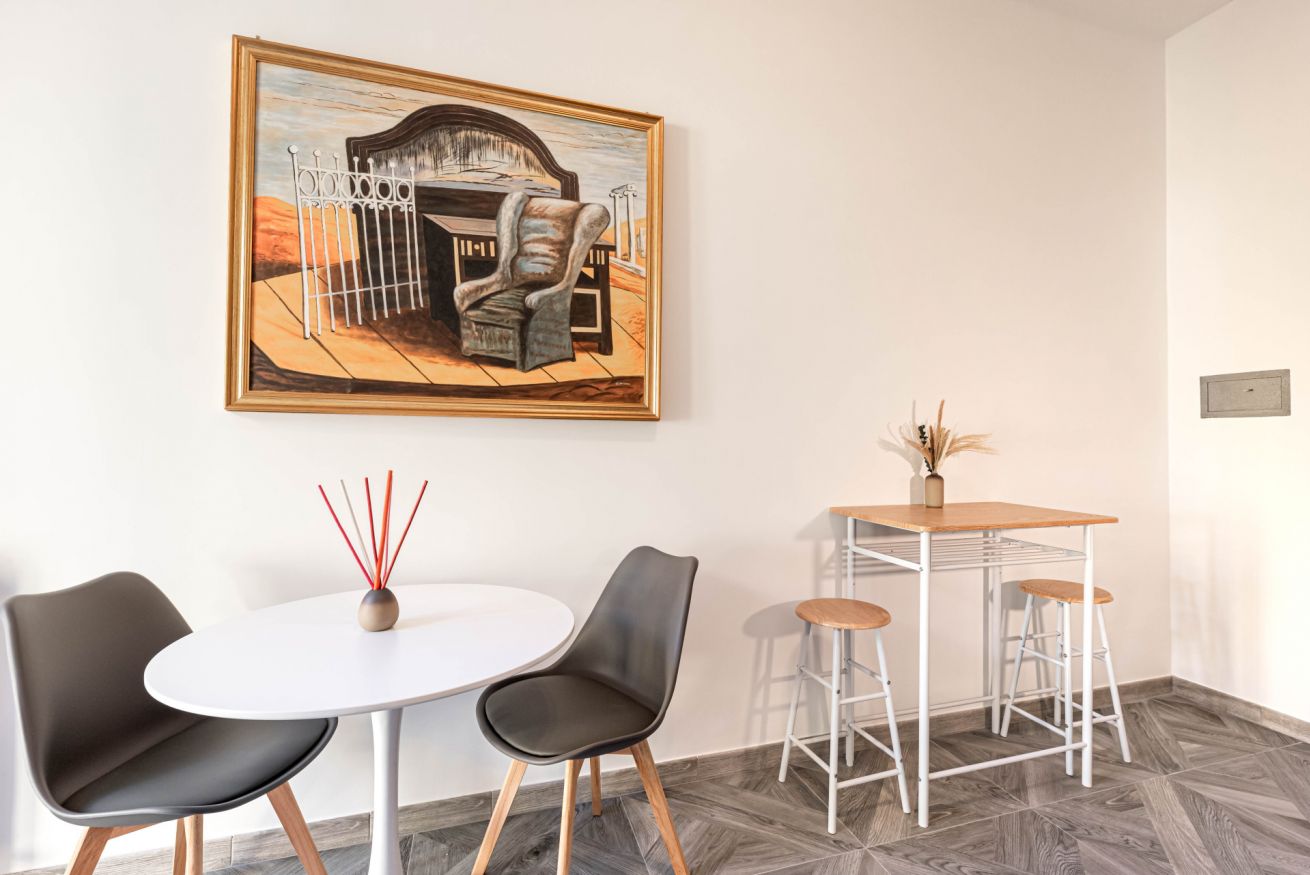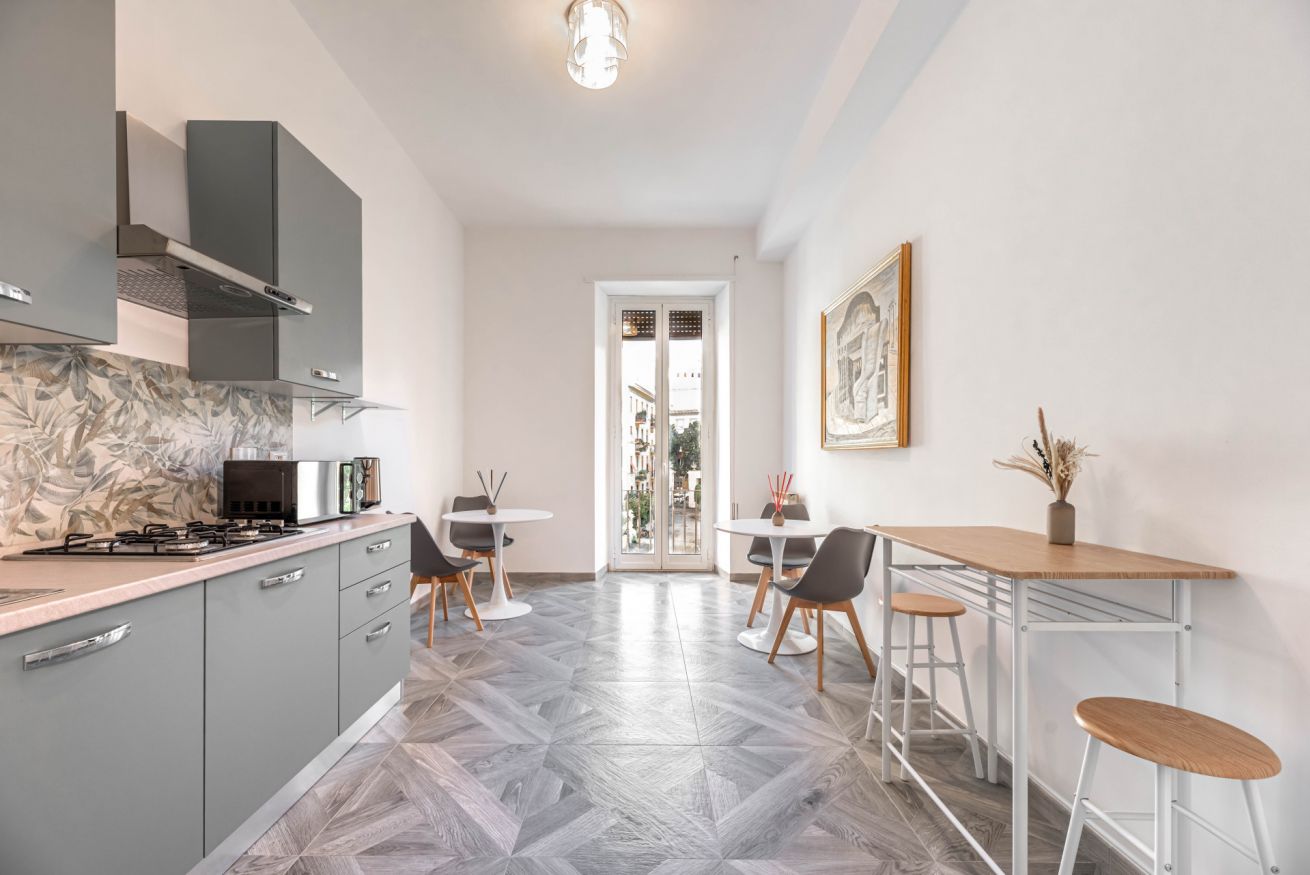 In condivisione con le altre 2 camere avrete una stanza con una cucina completa- macchina caffe' Nespresso-bollitore-forno a microonde e con il vostro tavolo privato dove poter mangiare o rilassarvi.