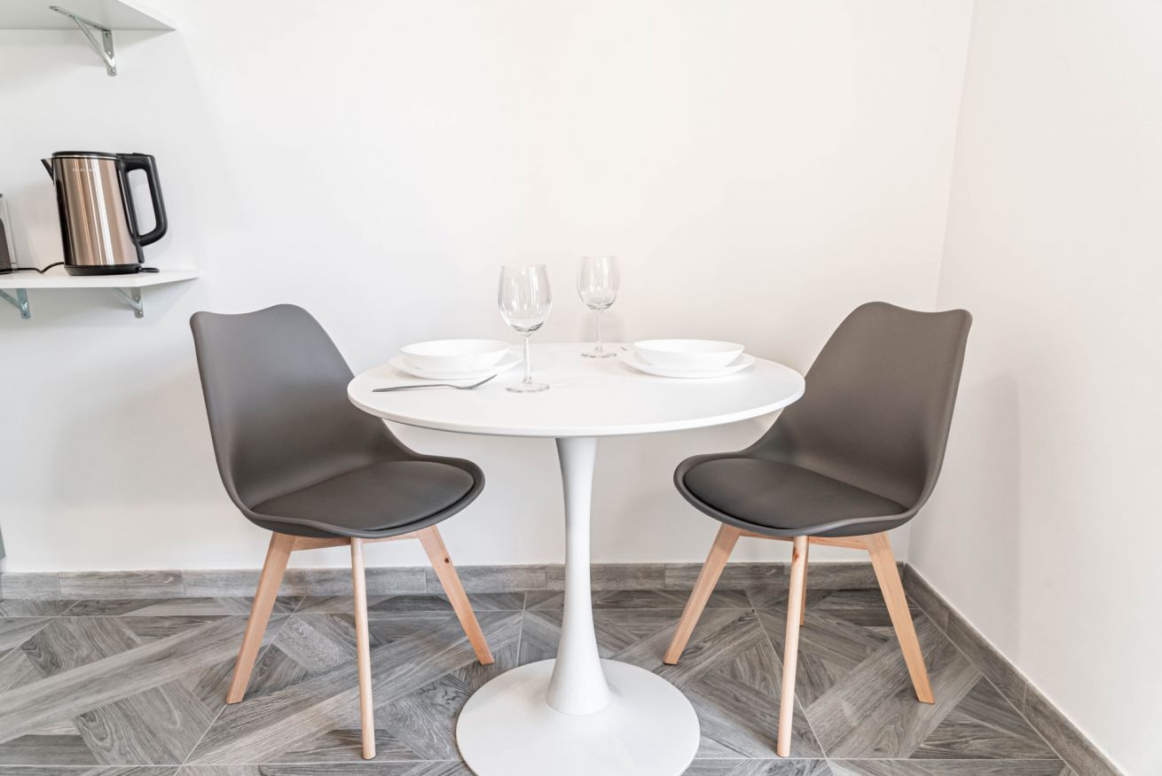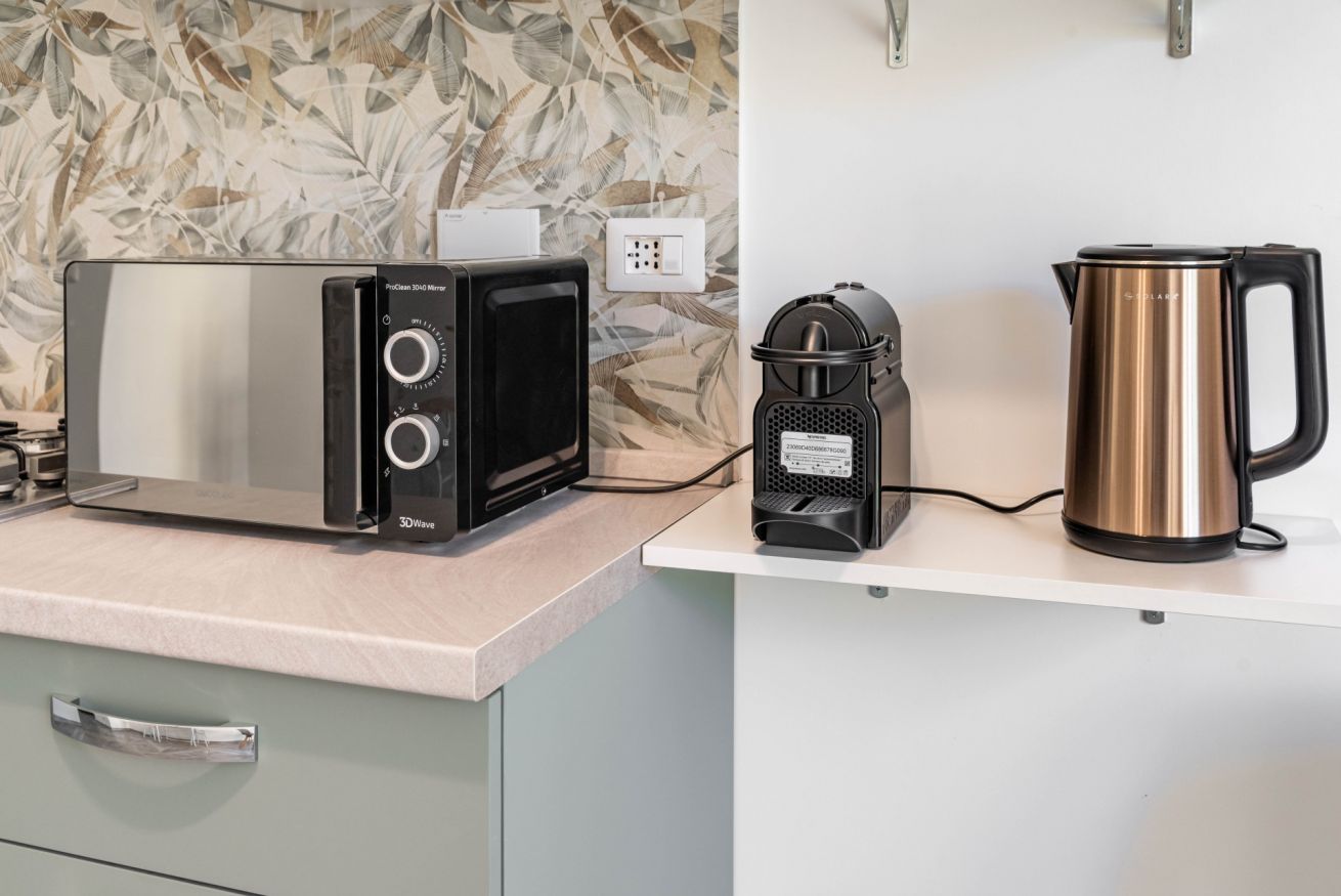In condivisione con le altre 2 camere avrete una stanza con una cucina completa- macchina caffe' Nespresso-bollitore-forno a microonde e con il vostro tavolo privato dove poter mangiare o rilassarvi.